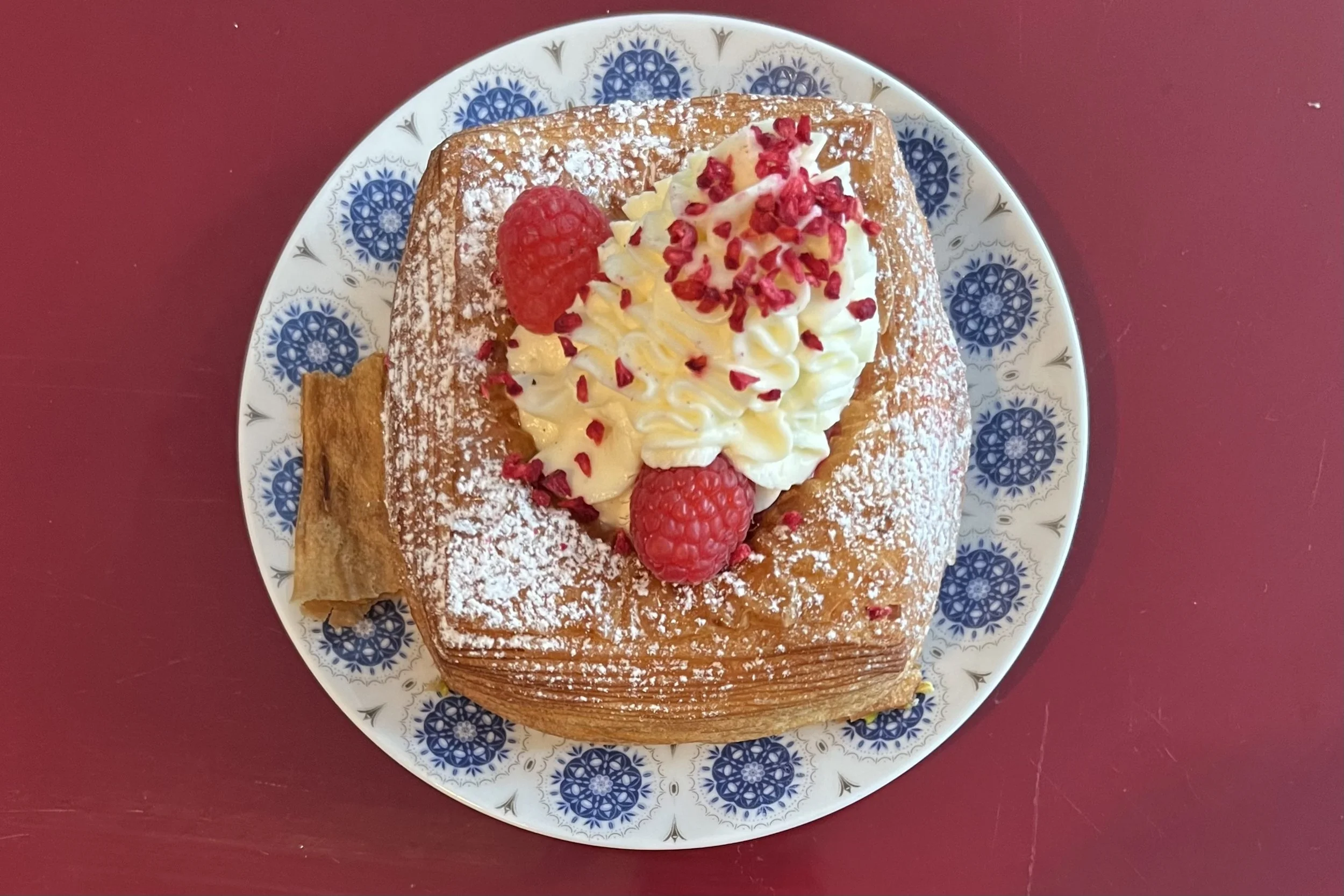 One morning, while walking through the city, I spotted a long line outside a bakery. The scent of fresh baking was irresistible—a second sign that I had to try something. I went in planning to get a cinnamon bun with a cappuccino… but ended up falling for the most beautiful croissant and Danish pastry I’d ever seen. In Denmark, they call those pastries with a cream in the middle wienerbrød, because the recipe was brought from Vienna in the 19th century.